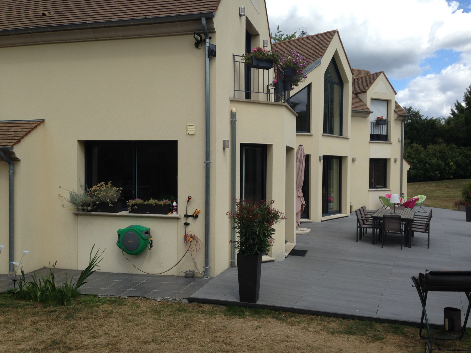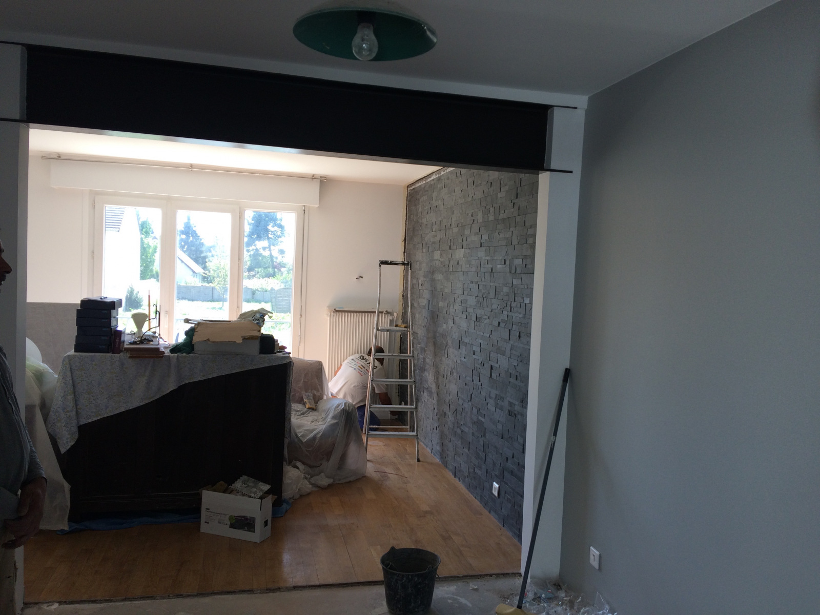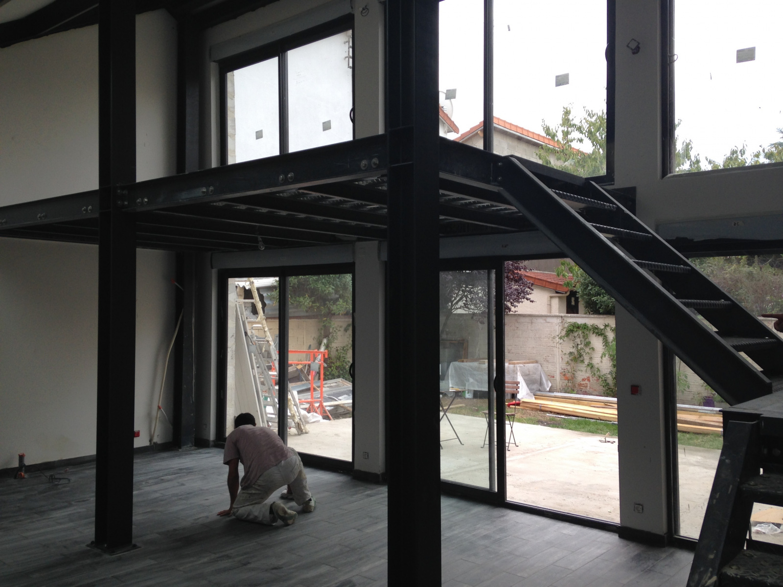 + Création d’une baie vitrée : vous pouvez également envisager la création d’une baie vitrée dans votre maison par l’ouverture de mur porteur extérieur. La création d’une baie vitrée permet de transformer un salon en augmentant de façon significative sa luminosité et transformant du même coup une maison ancienne en maison moderne.